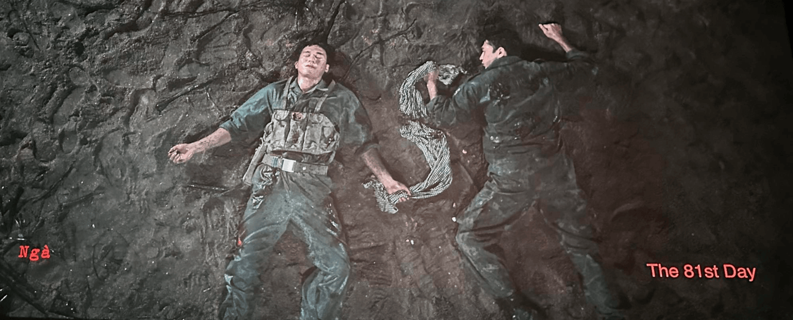 Cao trào của bộ phim nằm ở hình ảnh chiếc khăn rằn bị cắt làm đôi trong một trận giao tranh sinh tử giữa Cường và Quang. Đó không chỉ là hành động điện ảnh, mà là một ẩn dụ sâu sắc: đất nước Việt Nam bị chia cắt bởi vĩ tuyến 17, bởi dòng sông Thạch Hãn đỏ máu, bởi những hàng rào chiến tuyến tưởng chừng không thể vượt qua. Một chiếc khăn vốn để sưởi ấm tình yêu, giờ bị chia lìa như chính vận mệnh của Tổ quốc. Một mảnh thuộc về Cường, một mảnh rơi vào tay Quang như để nói rằng ở cả hai phía, vẫn là những người con Việt, cùng mang nỗi đau, cùng khao khát đoàn tụ.