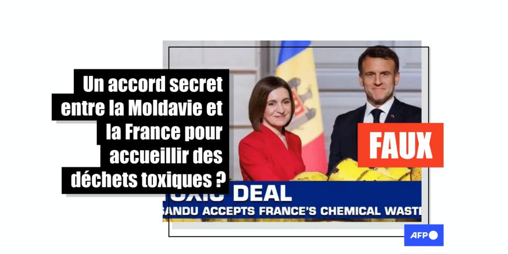 Ảnh minh họa : Tin giả về việc tổng thống Moldova Maria Sandu thỏa thuận với tổng thống Pháp Emmanuel Macron, chuyển hàng nghìn tấn rác thải độc hại từ Pháp sang Moldova.