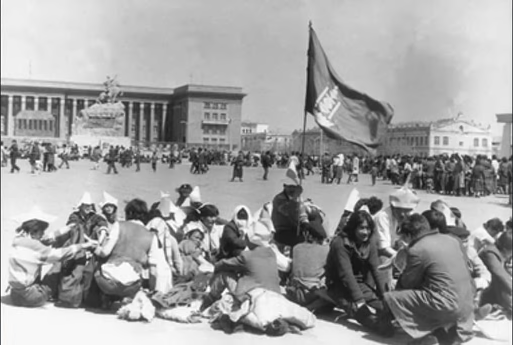 Biểu tình tuyệt thực Cách mạng dân chủ tại Mông Cổ 1990. Author: Democratic Union Archives, via Wiki commons