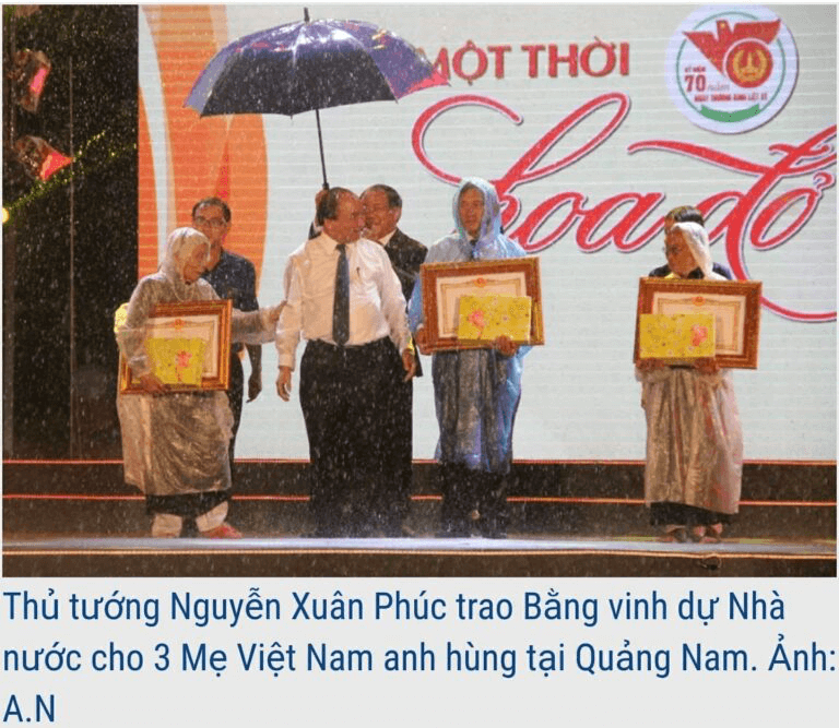Mấy năm trước, nhìn bức hình các bà cụ đứng trong cơn mưa tầm tã để nhận một “bằng khen” trong khi chiếc dù duy nhất được dùng để che cho Nguyễn Xuân Phúc để thấy sự băng hoại, thối rữa về đạo đức trong xã hội Việt Nam ngày nay trầm trọng đến mức độ nào.