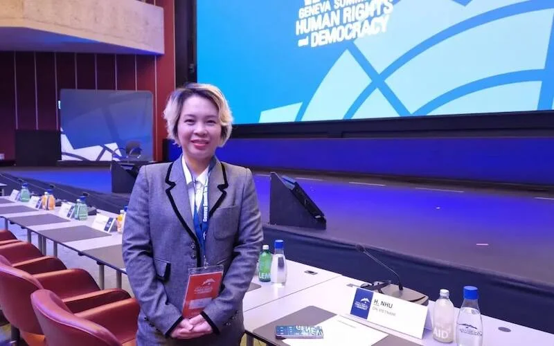 Nhà hoạt động chống tham nhũng và cựu tù nhân chính trị người Việt Nam Đặng Thị Huệ, biệt danh Huệ Như, đã phát biểu về nhân quyền và tình trạng tự do ở Việt Nam tại Hội nghị Thượng đỉnh Geneva về Nhân quyền và Dân chủ vào ngày 18 tháng 2.